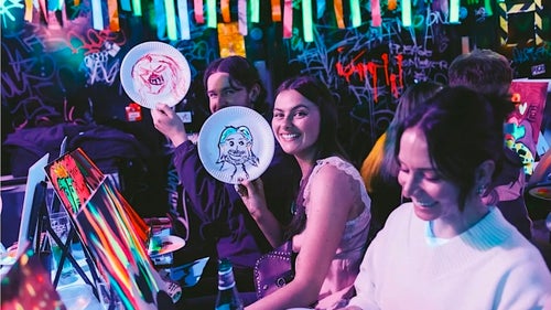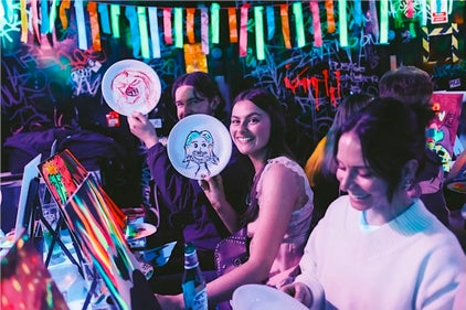 Paint A Neon Canvas with music, UV Lights and prizes. No experience needed to take part, create a painting under UV lights with fluorescent paint and do something very different!